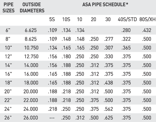 * Wall sizes available up to 1.5” on certain pipe sizes