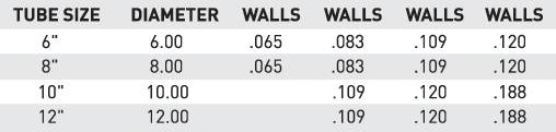 * Most diameter and light wall combinations of HCW tubes can be manufactured by PCC Rollmet, Inc.